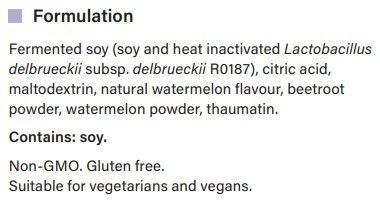 The specific probiotic strain Lactobacillus delbrueckii R0187 was used to ferment non-GMO soy before being heat inactivated, creating this postbiotic-rich fermented dietary supplement which helps to support upper gastrointestinal comfort.