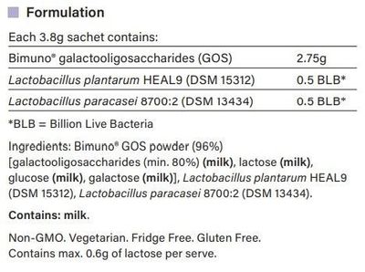 Synbio-GOS is a synbiotic combination of a specific prebiotic fibre, Bimuno GOS®, and two probiotic strains which feed upon it, Lactobacillus plantarum HEAL9® and Lactobacillus paracasei 8700:2™ to support gut healing, balance the microbiome and restore digestive health.